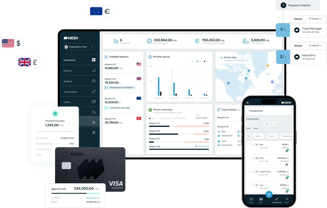 With multi-entity integration and multi-currency support, Mesh is the only T&E platform designed for modern global enterprises.